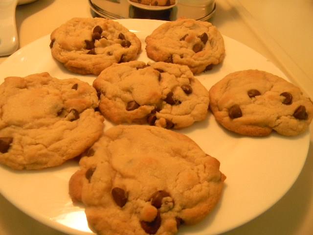 Sometimes we get so wrapped up in all of the fancy, fifty-ingredient recipes, that we forget how hard it is to make something simple, like the perfect chocolate chip cookie. This recipe was actually a mistake. I love to talk to people while I bake but this can also mean messing things up! I accidentally added an ingredient not in the original recipe. See in the picture how the cookies are light and a little puffy? I added baking powder along with the called-for baking soda. The mistake ended up being a hit! The baking powder gives the cookies a wonderful texture! Please try! The original recipe comes from an old Betty Crocker cookbook… plus my mistake!
