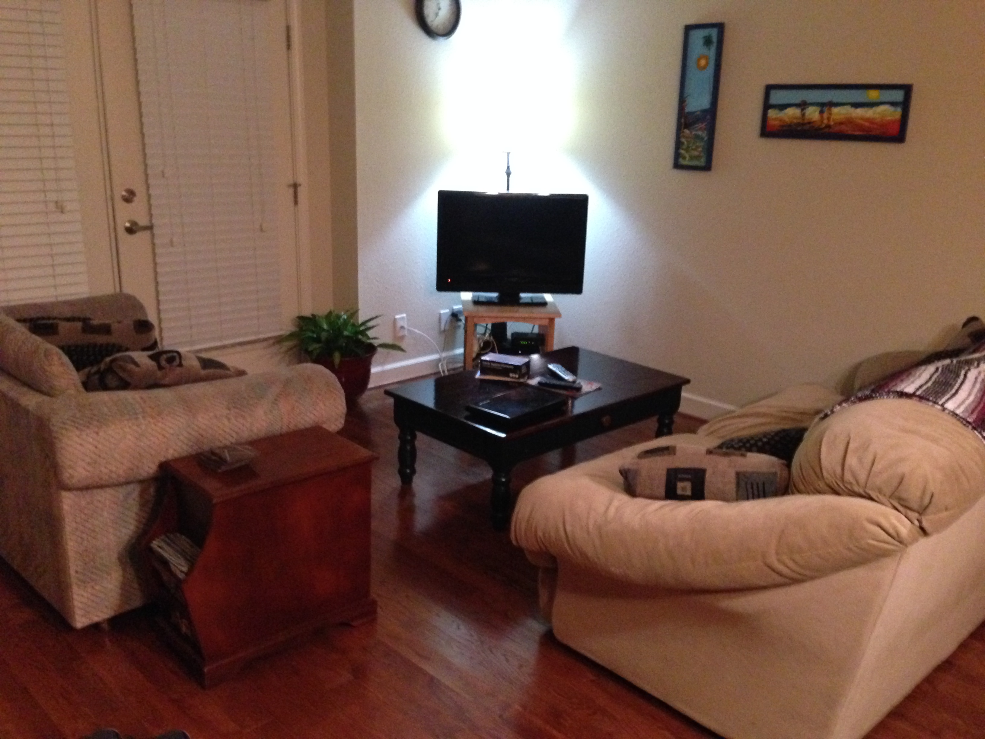 We were making it work. Then my parents, being awesome, offered that as our Christmas gift they could help us buy a couch. This set us off on the journey of seeing if we could redecorate a small apartment space without paint and on a tight budget. To top it off neither one of us have any aspirations of being interior decorators and we scared that we might not be any good at redecorating a room. In the end I feel like we pulled it off and we are both very happy with the space. We went to bulk and wholesale furniture stores, couponed, sold things on Craigslist, and Cyber-Mondayed like champs. All of this made it so that a few hundred bucks later we have a beautiful and apartment-size-appropriate living room. There are still a few finishing touches to add, but I think it is safe to say we have left the land of oatmeal.